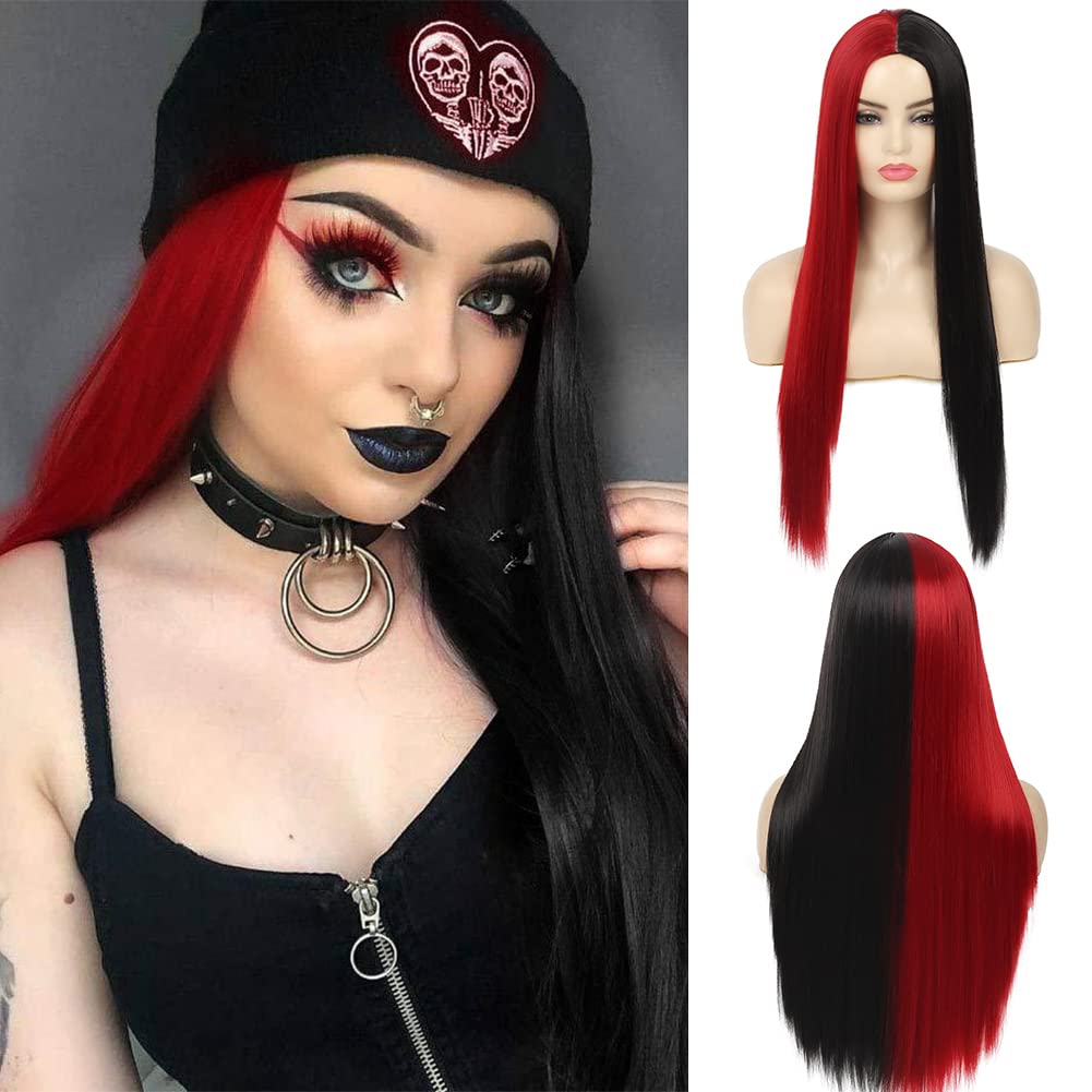 Beweig Half Red Half Black Wigs Long Straight Lolita Cosplay Hair Wig with Bangs Synthetic. Lets also find out the article.